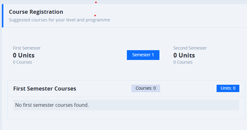 If your course registration is showing 0 Unit, Inform your HOD to contact ICT with the list of courses